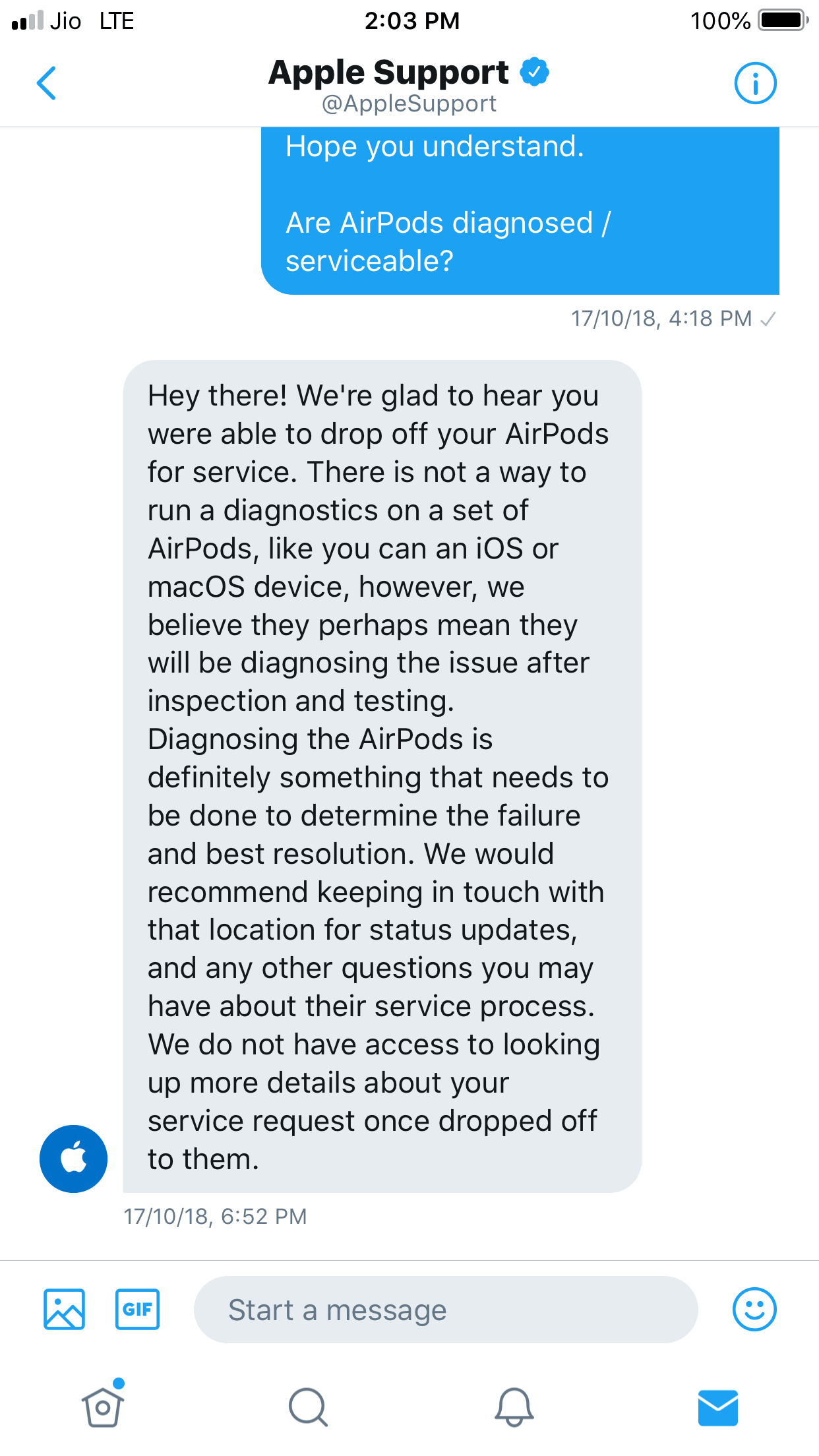 Extra Read – I got confused by the word ‘diagnostics’. Many times in past my iPhone and MacBook have been diagnosed, but I did not know whether this was possible with AirPods. So I asked Apple Support.
